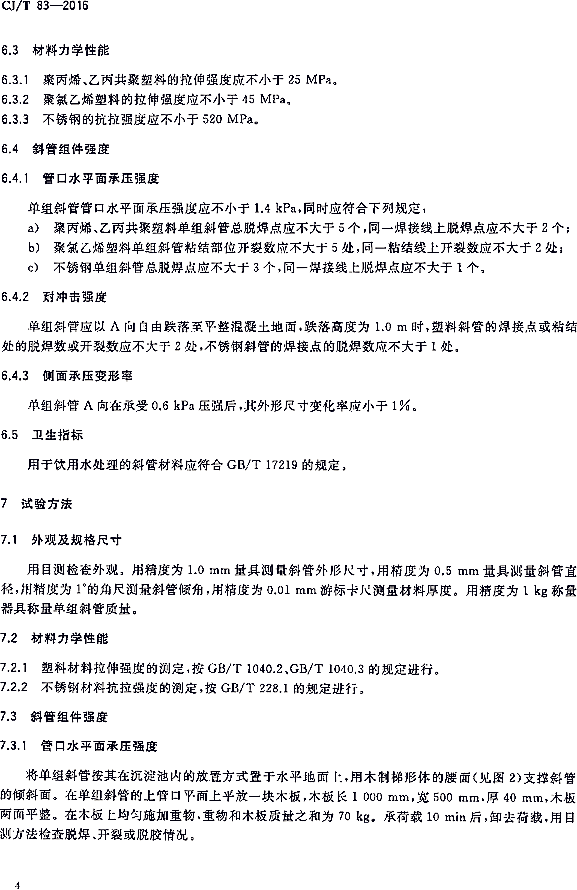 斜管填料國(guó)標(biāo)CJ/T83-2016中斜管強(qiáng)度測(cè)試方法