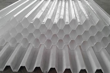 斜板填料、乙丙共聚斜板填料和小間距斜板填料主要由乙丙共聚材料制成。在淺層理論的基礎(chǔ)上,在斜板上部設(shè)置沉淀距離合理的沉淀段,在下部控制斜板的幾何形狀,在斜板下部形成穩(wěn)定的接觸凝集段,通過(guò)接觸作用和淺池沉淀機(jī)理達(dá)到明礬和水分離的目的。