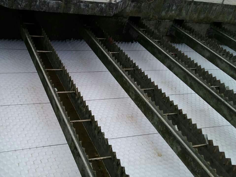 食品級塑料是處理飲用水的必需品。現(xiàn)有兩種斜管材料符合要求。一種是PVC塑料薄片,厚度為0.4~0.5mm,熱壓成半蜂窩狀,用聚氨酯等樹脂膠或電熱熔焊將其粘結(jié)成蜂窩狀,適合在溫度較高的地方使用,另一種是聚丙烯塑料,它的規(guī)格、形狀和制作方法與PVC塑料相同,但受熱后更易軟化,因此,污泥在斜管中的滑動受到影響。價錢較高,適合低溫地區(qū)。相同條件下,它們的使用壽命基本相同,一般是6~8年,有遮陽措施的時間可達10年以上。