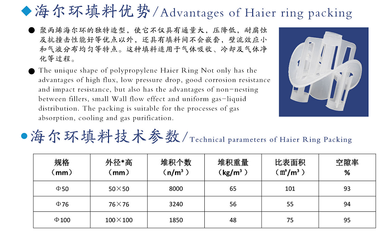聚丙烯海爾環(huán)填料是用聚丙烯注塑成型的一種新型開孔填料,它最早是在國外被開發(fā)出來的。后來我國對這種填料進行了研究,并且成功的地開發(fā)出國產(chǎn)海爾環(huán)填料。