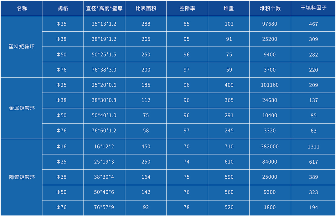 矩鞍環(huán)屬于填料的一種型號(hào),它采用連續(xù)擠出的工藝進(jìn)行加工,與同種材質(zhì)的拉西環(huán)填料相比,具有通量大、壓降低、效率高等優(yōu)點(diǎn)。比鮑爾環(huán)阻力小、通量大、效率高、填料強(qiáng)度